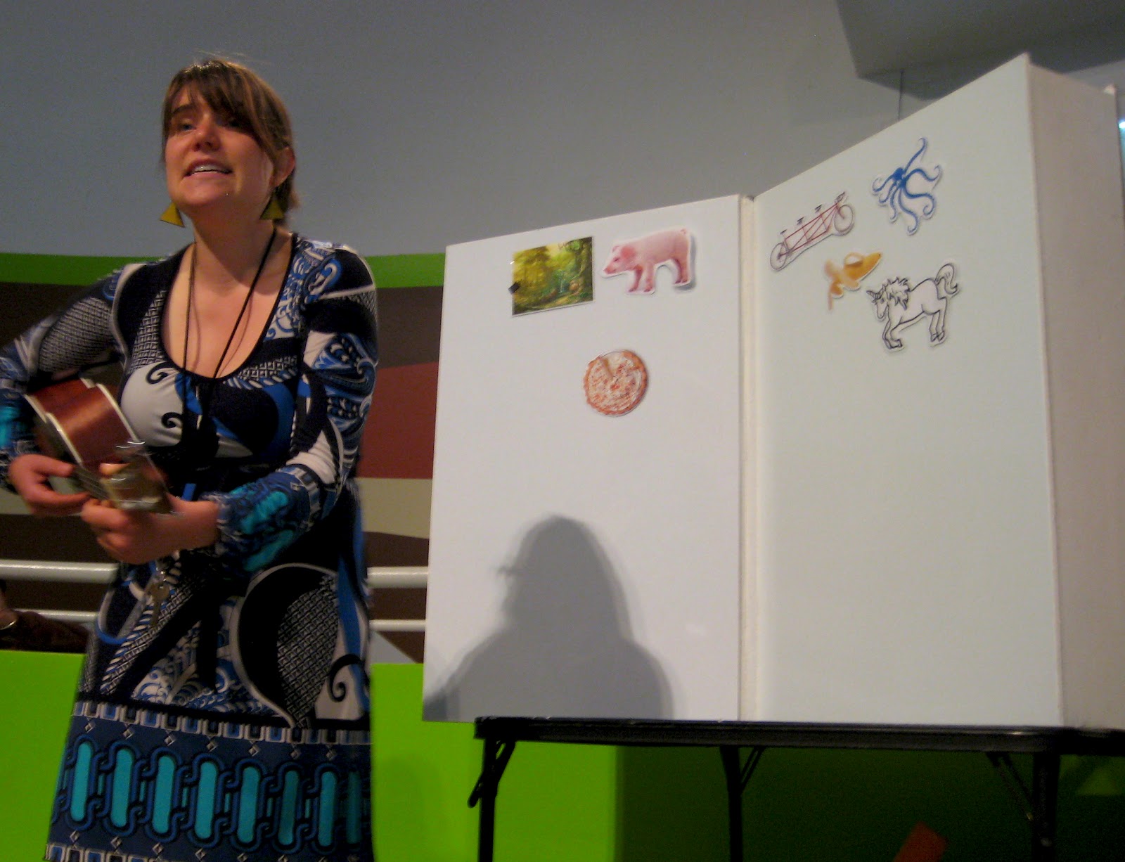 When I arrived, we were encouraged to take on a personal project beyond the regular tasks. I felt awkward and stuck like usual, but then I overheard Eli talking about how he wanted to vamp up the giant storybook we use in Early Birdles, which is opened to two blank pages that are filled with random pictures so that the leaders use to make up a new story every day. I love bookmaking, so I asked if I could take on the challenge and was granted permission. I brainstormed for a long time, I drew up what I thought it would be like. Then I interview both leaders to see what they thought would be useful and we came up with great ways to revamp the book to the next generation. So add a few weeks, a long day of brainstorming and prepping with help from my mother, and I flung myself headlong into the book and finished in a few days. Below is my final product, complete with two magnetic whiteboards, giving the story tellers plenty of options, as well as a storage container in the top of the box for the pieces to live. The cover is adorned with the blue Birdles and Ah-ha, characters from the museum that pertain to Early Birdles.